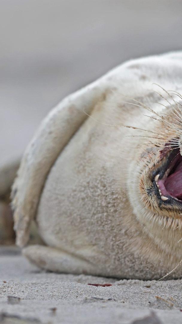 This baby harbor seal is happily ensconced on a beach on the German island of Düne in the North Sea archipelago of Heligoland. Throngs of seal watchers come here every May and June to watch these cute pups spend their first few weeks of life lolling about the beach.