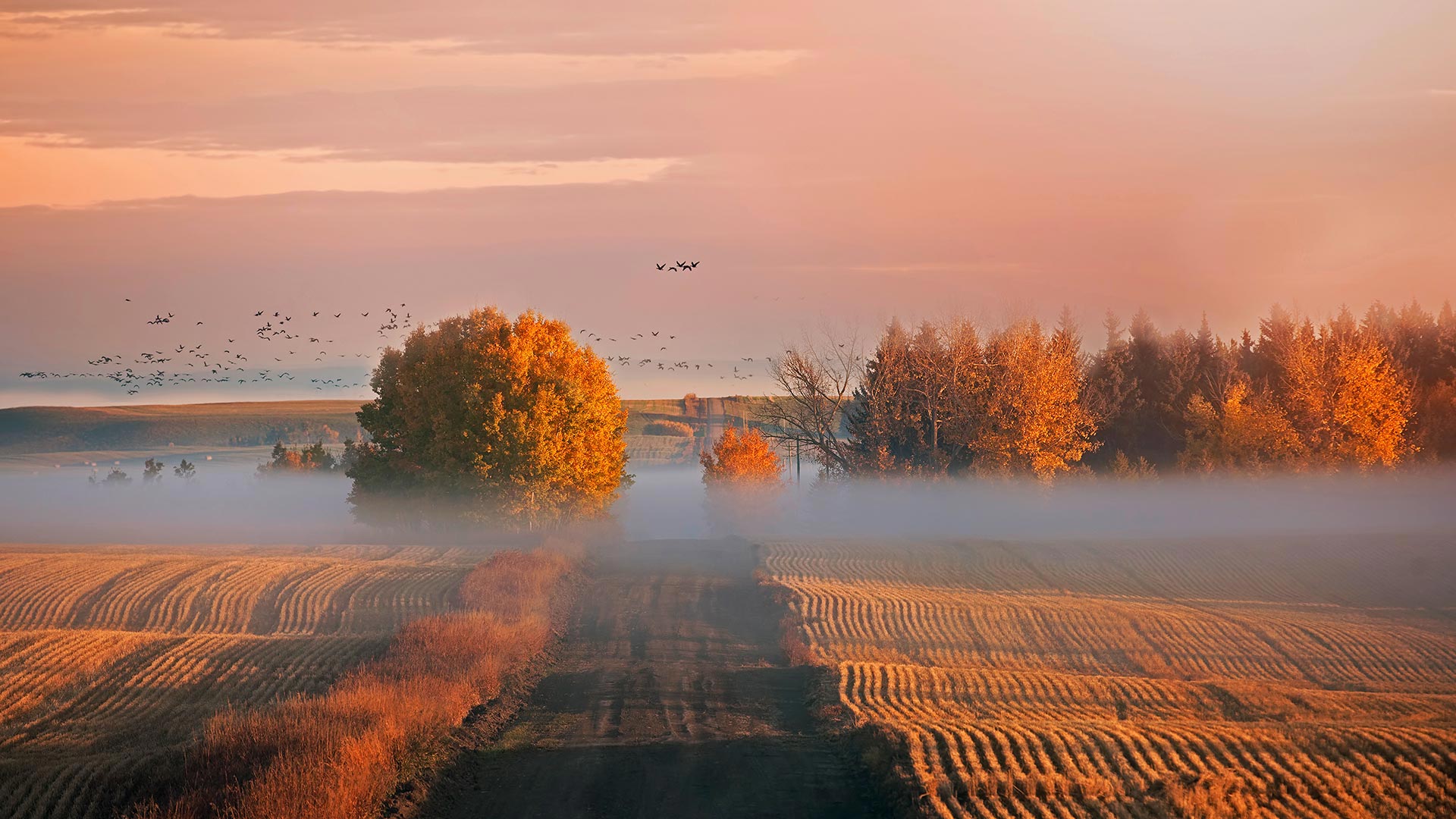 We"re looking at a fall sunrise in Alberta, Canada, in honor (or should we say "honour") of Canadian Thanksgiving. The holiday is officially celebrated on the second Monday in October, though many families gather the previous day. The first known Thanksgiving celebration in Canada was organized by English explorer Martin Frobisher in 1578 when he reached Newfoundland. Years later, American loyalists who were faithful to England during the Revolutionary War moved to Canada and brought traditions with them, such as eating turkey on Thanksgiving. As in the US, a Canadian Thanksgiving table is likely to have a horn-shaped cornucopia filled with festive-looking fruits and grains. The menu often includes turkey, but also regional dishes like salmon and Nanaimo bars—a layered chocolate dessert.