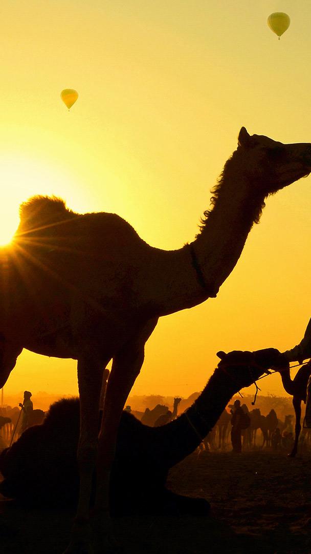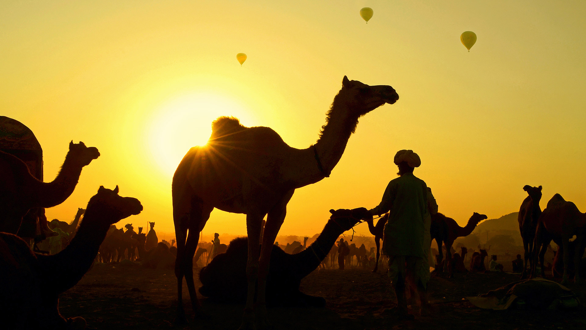 Welcome to India"s largest camel and livestock festival, the Pushkar Camel Fair. Thousands of people travel across mountains and through the Thar Desert to buy and sell livestock and enjoy the carnival-like atmosphere here. The fair offers visitors many diversions, but it"s the camels who get top billing. Considered "ships of the desert," camels were domesticated by nomads thousands of years ago to carry goods across forbidding landscapes. When well fed and hydrated, a camel can travel great distances without needing water or food, sometimes for weeks. The humps on a camel"s back serve a purpose: they"re fatty deposits that act as a source of nutrition. Here, on the edge of the Thar Desert, the camel remains a mode of transport for nomads as well as a source for textiles, goods, and sustenance (did you know a camel"s milk does not curdle in the desert heat?). The camel is held in such high esteem, the Pushkar Fair even stages camel decoration contests.
