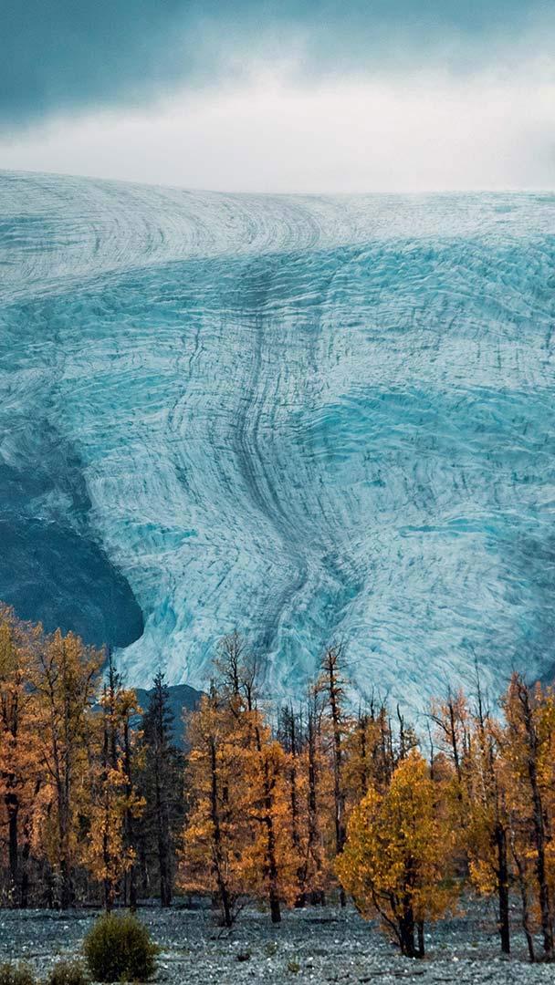 In honor of Alaska National Parks Day, we"re traveling to Kenai Fjords National Park—home of the awe-inspiring Exit Glacier, seen here. The park sits at the edge of the North Pacific Ocean where frequent winter storms dump the snow that feeds this land of ice. The Harding Icefield crowns the park with at least 38 flowing glaciers—one of which is Exit Glacier. Exit Glacier is known for being one of the most visited of Alaska"s glaciers, likely because it’s accessible via the Seward Highway. In mid-November, the road to the glacier closes to cars due to heavy snowfall, so visitors can only get there using snow-friendly transportation like dogsled or cross-country skis.