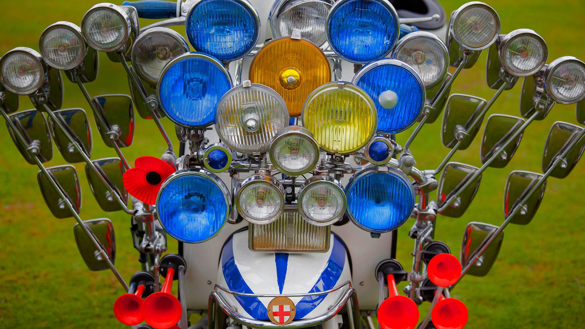 This Lambretta scooter, decked out with extra mirrors, lights, and horns, is an iconic symbol of the mod subculture. Attendees at Purple Weekend, a mod-revival festival held every year in León, Spain, will see many Lambretta and Vespa scooters. The popular event held this weekend gathers fans of mod music, fashion, and culture. The mod movement began in England in the late 1950s, as modern jazz and rhythm & blues records imported from the US sparked the clean-cut, modernist fashion and lifestyle aesthetic that appealed to a new middle class of young people in postwar Britain. The fashion, scooters, and music choices caught on outside the UK during the 1960s and inspired future generations to embrace the style. Now, mod-revival festivals like Spain’s Purple Weekend happen in many countries around the world.