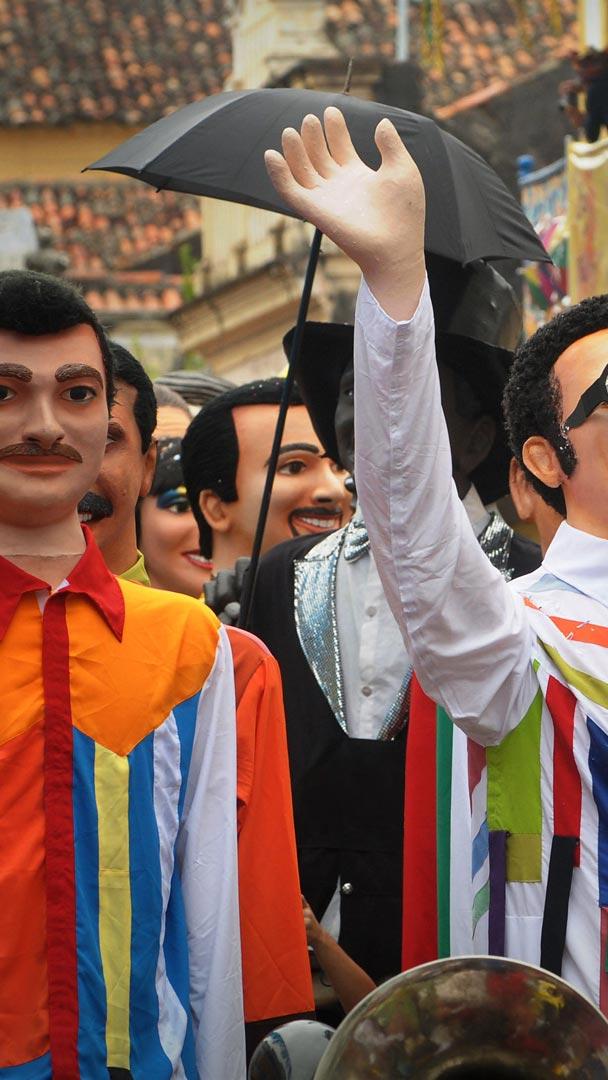 It"s the first official day of Carnival in Olinda and the streets in the historic part of town will be alive with revelers who come out to see dozens of giant puppets parade through the town. The larger-than-life "bonecos de Olinda" kick off the festivities each year and have been part of the celebrations here for over a century. They can be up to 20 feet tall and weigh around 45 pounds each. But Carnival in Olinda is not only about these incredible puppets. Like other Carnival celebrations in Brazil, Olinda"s features music, dancing, costumes, and fun.