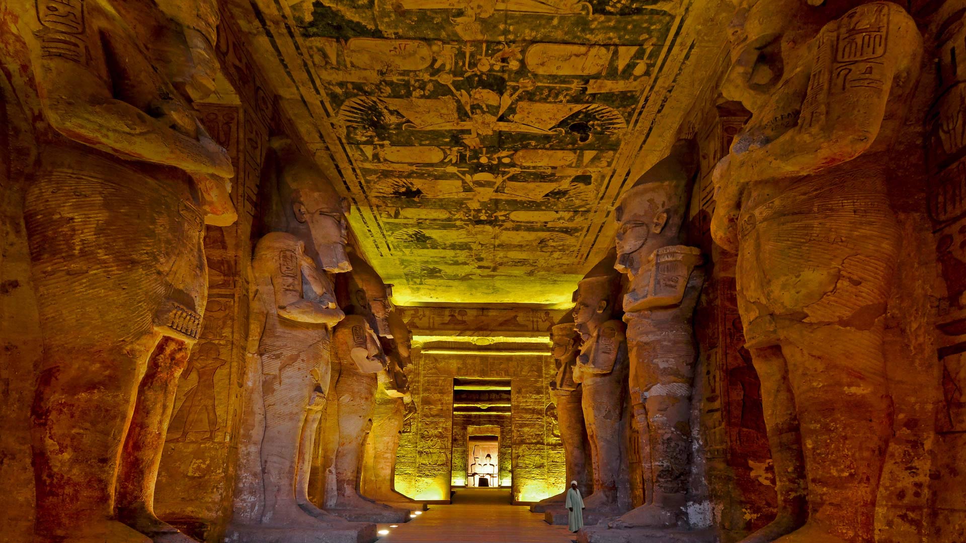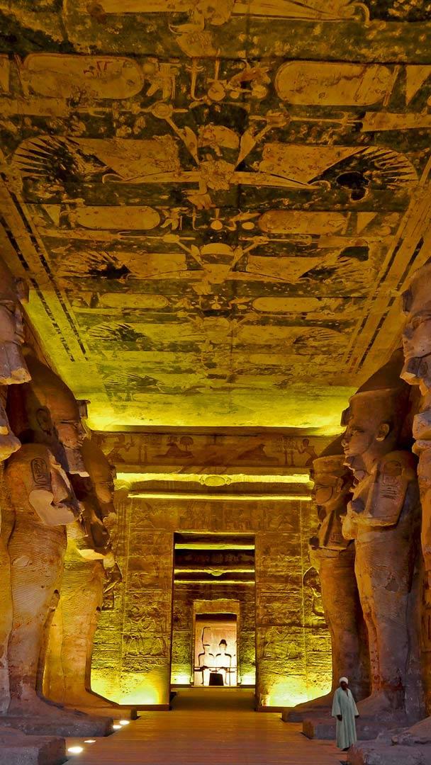…but when it is, it"s pretty spectacular. This tiny lakeside settlement"s Great Temple of Ramesses II was positioned on the orders of that powerful pharaoh so the inner sanctum (in this picture, that"s the small room at the very back) is lit by the sun only twice a year. On February 22 and October 22 (thought to be Ramesses" coronation and birth dates, respectively), the first light of dawn illuminates the sanctuary and three statues within: one of Ramesses, one of the sun god Ra, and one of the chief god Amun. A fourth statue depicting the underworld figure Ptah is permanently shrouded in shadow.