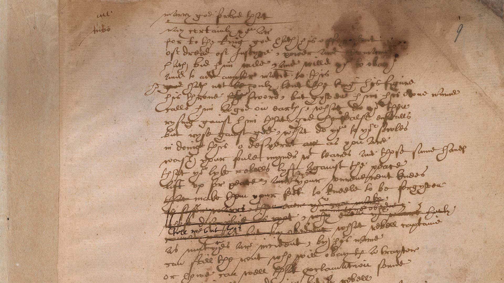 "…and write my mind." It"s Shakespeare Week in schools across the UK, so we"re field-tripping to the British Library for a peek at the only surviving specimen of what"s thought to be playwright William Shakespeare"s handwriting (if you don"t count legal documents). The scratchy cursive is inked within the script of Anthony Munday"s "Sir Thomas More," a then-controversial play about a king-defying statesman. In 1603, the censorial Royal Office of the Revels brought in Shakespeare among a team of writers to retool the script. But if Shakespeare"s task was to tone things down, he may have had other ideas: His three-page addition includes an impassioned speech by the title character to a mob that"s rioting over immigration policy.