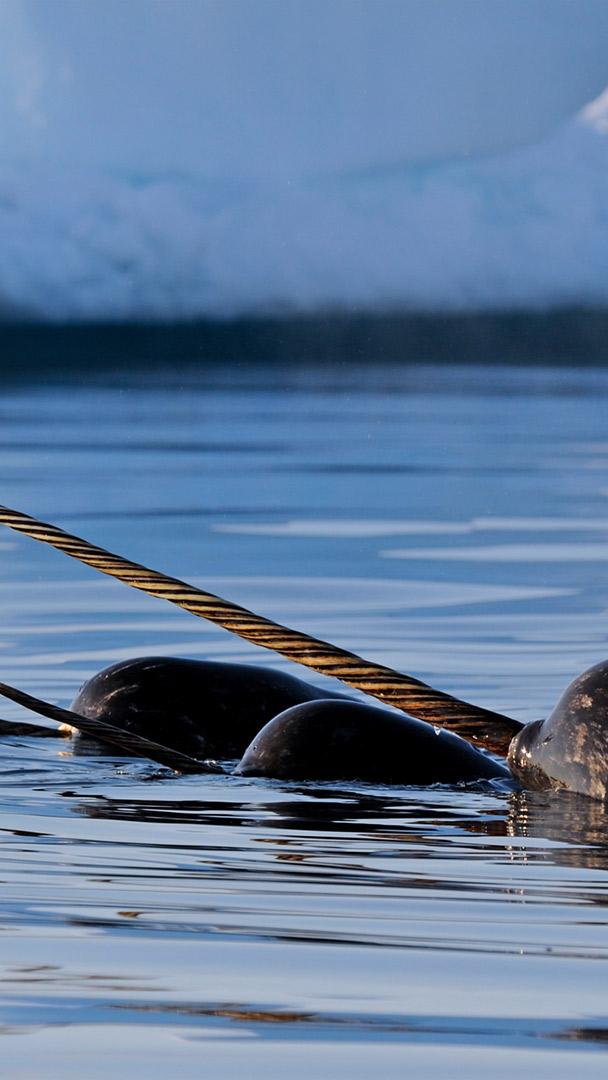 Today is Unicorn Day—or what celebrants call "the sparkliest holiday of the year." To honor the mythical horned beast, we bring you the next best thing: a pod of narwhals brandishing their tusks in the Arctic Ocean. Narwhals develop only two teeth, but—in males especially—the left canine can grow into a 9-foot-long spiraled tusk. The tusk juts right through the narwhal"s upper lip, lending the whale the nickname "unicorn of the sea."