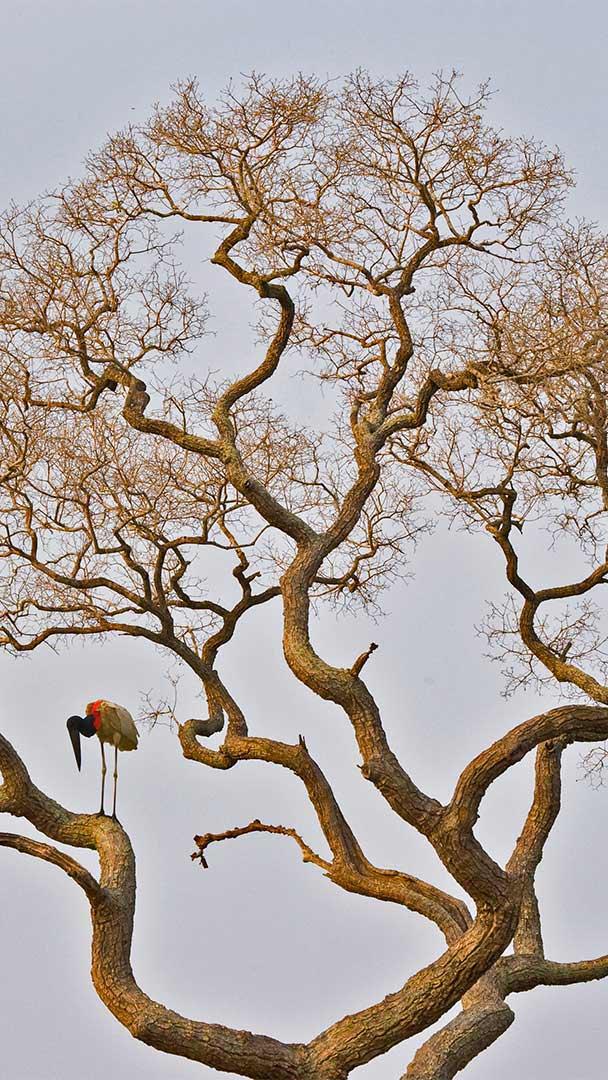 You"re more likely to see jabiru storks down on the shores of ponds or on riverbanks, where they hunt for small fish, amphibians, and lizards. They"re the tallest flying bird in South and Central America, with the largest males standing 5 feet. Despite their size, jabiru storks are graceful fliers. Here in the Pantanal, a sprawling tropical wetland in western Brazil, jabiru storks will build a massive nest in late August or September—just as spring is beginning in the Southern Hemisphere. The stork mates in this image may be scouting out a good place for their nest. And once it"s built, the pair will raise anywhere from two to five jabiru stork chicks.