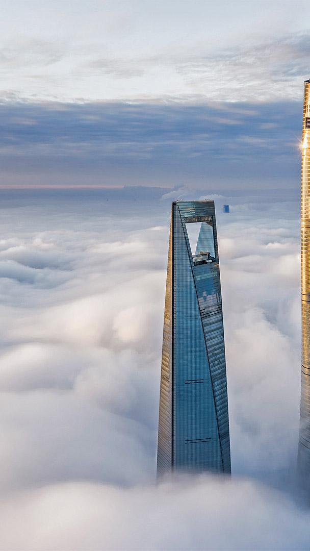 Piercing the clouds above Shanghai as we celebrate National Skyscraper Day, each of these three supertall spires could be seen as a freeze-frame of China"s swift economic growth in the past couple of decades. Jin Mao Tower (right, 1,380 feet) was China"s tallest building from 1999 until the Shanghai World Financial Center (left, 1,614 feet) opened in 2007 and took the title. Shanghai Tower (center, 2,139 feet) topped out in 2013, besting the SWFC and becoming the second-tallest skyscraper in the world (behind Dubai"s Burj Khalifa, 2,722 feet).