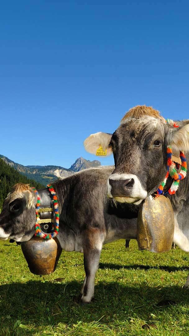 These stylish cows are decorated to celebrate their annual return from high Alpine pastures to the towns and villages where they spend the winter. Known as the Almabtrieb, the tradition is generally held in late September or early October throughout the Alpine regions of Europe. These cows are in the Tannheimer Tal, a valley of the Allgäu Alps in Austria, where more than 100,000 head of cattle make the seasonal migration.