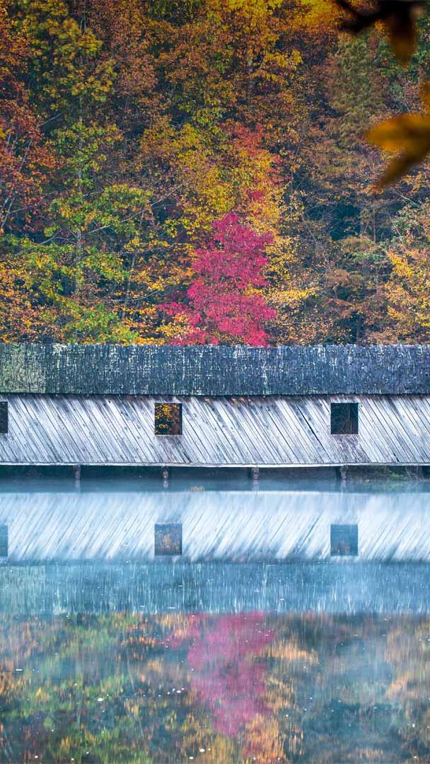 Framed here for the season by fall foliage, the Cambron Covered Bridge is located along a nature trail in Madison County, *Alabama*—not Iowa, which is the setting of the bestselling romance novel "The Bridges of Madison County." It"s believed there were once about 14,000 covered bridges in the US, but fewer than 900 or so remain today, a quarter of which can be found in Pennsylvania. But Alabama has covered-bridge bragging rights, too. The state has 11 historic covered bridges. Built in 1974, the Cambron Covered Bridge doesn"t make the official "historic" list, but it does offer hikers a peaceful passageway with great views of Sky Lake.