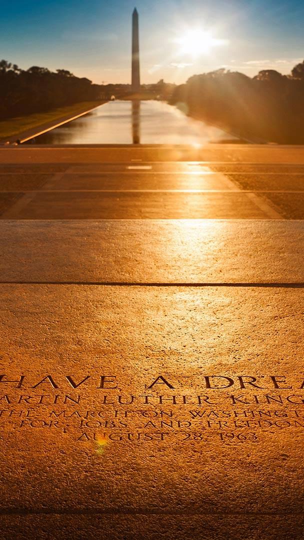 This inscription marks the spot on the steps of the Lincoln Memorial in Washington, DC, where civil rights activist Martin Luther King Jr. stood while delivering his famous "I Have a Dream" speech. It was August 28, 1963, and King was addressing a quarter-million people spread across the National Mall during the March on Washington for Jobs and Freedom. King referred to written notes for most of the speech, but as he neared the end of his prepared remarks, he heard gospel singer Mahalia Jackson, who was standing nearby, shout out, "Tell them about the dream, Martin!" King responded by partly improvising the rest of his message in a soaring, sermon-like delivery, punctuating his ideas repeatedly with that single phrase, "I have a dream." King"s dream for racial justice, so eloquently shared that day, would resonate through the crowd and across the nation, bringing passionate new energy to the civil rights movement. It still resonates today.