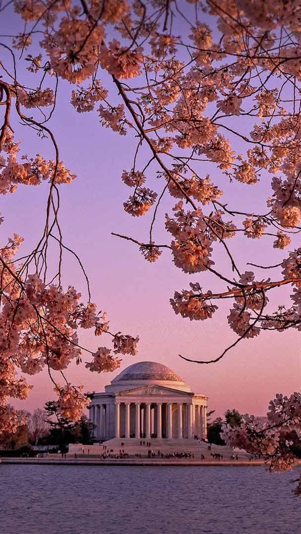 The National Cherry Blossom Festival is always a highlight of spring in our nation"s capital. It"s timed for the peak bloom date (usually the last week in March or first week of April) when most of the blossoms are open on the cherry trees that surround the Tidal Basin. The trees were originally a gift from Japan, planted in Washington in 1912. While some Cherry Blossom Festival events are virtual this year, the trees will decorate the city as usual—just as they do in this photo framing the Jefferson Memorial. This year"s festival began on March 20 and runs until April 11. It includes in-person tours and activities visitors can do on their own, as well as virtual viewings and an online Celebration Show that debuts on April 9.