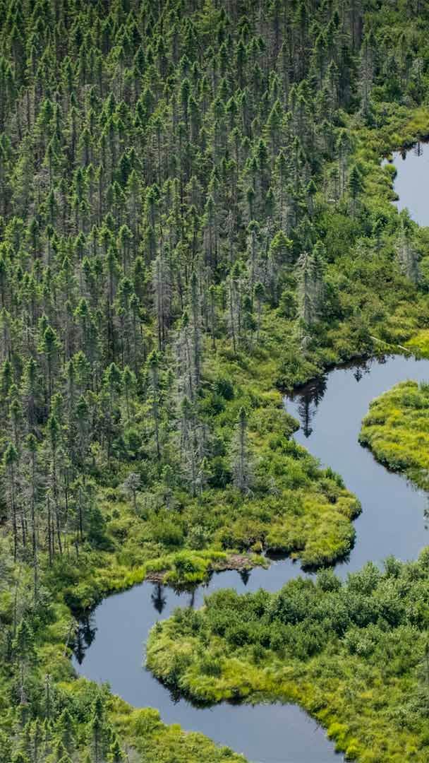 To celebrate American Wetlands Month, we"re flying over Norcross Brook, which snakes through the wetlands of Maine"s North Woods near Moosehead Lake. Wetlands like these are an often underappreciated natural resource. They act as vital links between the land and our planet"s watersheds, playing a crucial role in protecting healthy ecosystems. In addition to providing indispensable habitat for the many species that call them home, wetlands filter our drinking water and cycle nutrients. They also provide a natural buffer from storms, absorb flood waters, and capture carbon from the atmosphere—all of which help to mitigate the impact of climate change.