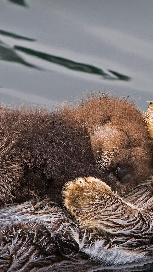 To celebrate Mother"s Day, we"re in California"s Monterey Bay, where a sea otter mom gives her 3-day-old pup a place to snuggle and gives us an amazingly cute picture to boot. These incredibly photogenic animal moms shower their kids with attention, cradling them and grooming them for hours. But all that love is more than a gesture of affection, as newborn sea otter pups can"t swim. A pup is totally dependent for about six months, so mom will carry it around on her stomach like you see here. When the little one does venture into the water on its own, mom will rub the pup to fluff its coat, which causes the fur to retain air bubbles, insulating it from chilly water and causing the youngster to float like a cork.