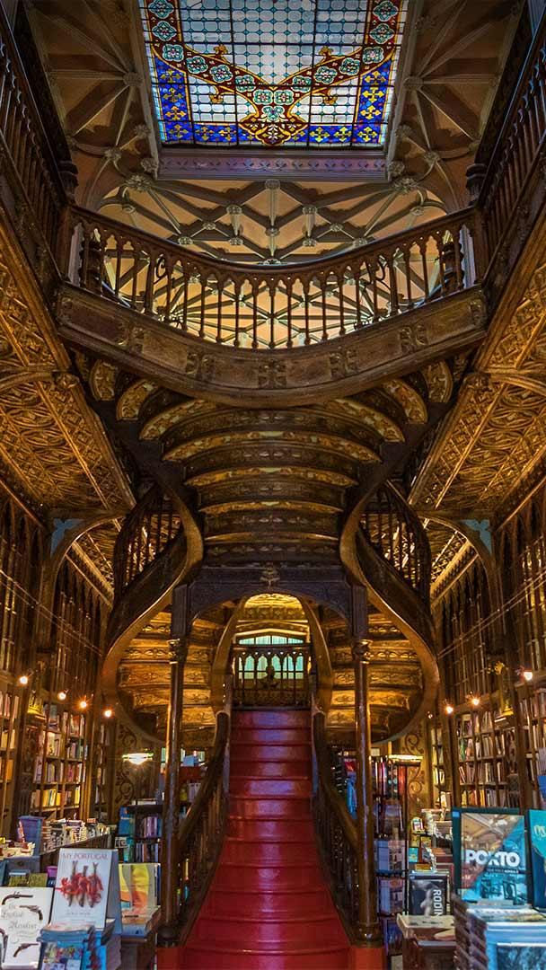 How will you celebrate International Literacy Day today? We"re highlighting this important observance with a photo of a very special bookstore, Livraria Lello in Porto, Portugal. With its art nouveau façade, neo-Gothic interior, stained-glass ceiling, swooping catwalks, and the dramatic, curvaceous staircase with crimson steps, the Lello is considered one of the most beautiful—and among the oldest—bookstores in the world. The Lello bookstore opened in 1906 and has been serving up the magic of books ever since.