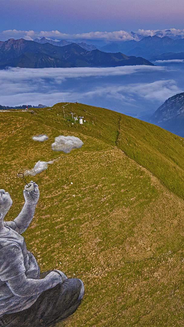 For World Children"s Day, we"re featuring an aerial view of a larger-than-life painting on the summit of the Moléson in the Swiss Prealps. The 16,000-square-foot fresco is titled "Un Nouveau Souffle" (A New Breath) and depicts a child blowing clouds toward the horizon. It was created by French-Swiss artist Saype—real name Guillaume Legros—who is known for his grassy graffiti around the world. The eco-friendly artist uses biodegradable paints made from natural pigments such as coal and chalk, so by the time you read this, his land art will have already disappeared into the soil.