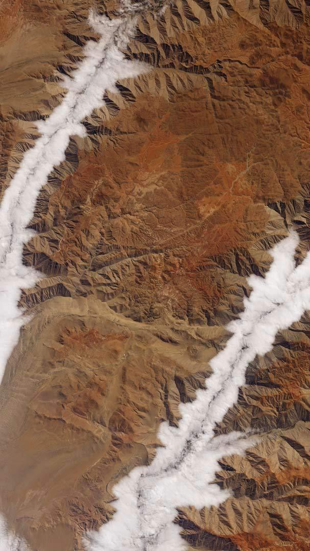 On this World Meteorological Day, celebrated each year on March 23, we climb far above the Earth for a view of the southern Peruvian coast courtesy of the Landsat 8 satellite. Below the clouds, at the bottom of those canyons, are the Yauca and Acarí Rivers, which drain into the Pacific. As any good meteorologist taking a break from today’s celebrations will tell you, warm air from the equator forms a layer over the cool coastal air here, pushing the clouds into the deep river canyons and covering the Pacific Ocean shore.