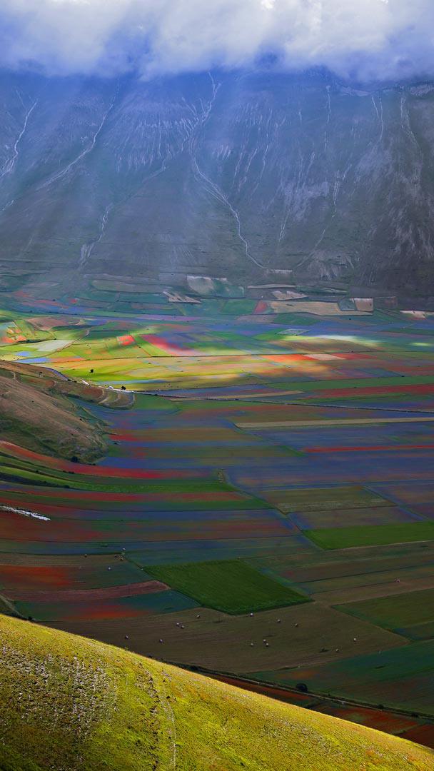 Welcome to wildflower season on the magnificent Piano Grande (Great Plain) in Central Italy. For some geographic perspective, we’re in the calf region of Italy’s boot, nestled in the Apennine Mountains. Perched on the hillside is the little village of Castelluccio, where you can purchase the crop that made this region famous: lentils. The tiny, thin-skinned lentils cultivated here are considered delicacies.
