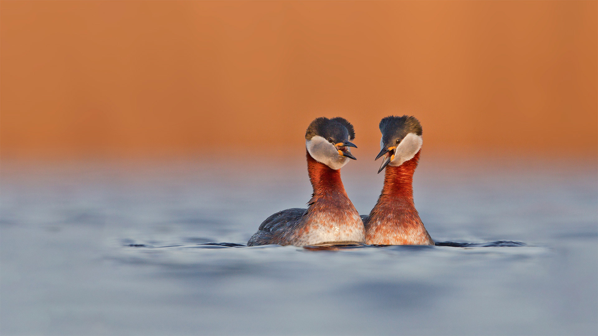 Red-necked grebes during breeding season © Edo van Uchelen/Minden Pictures