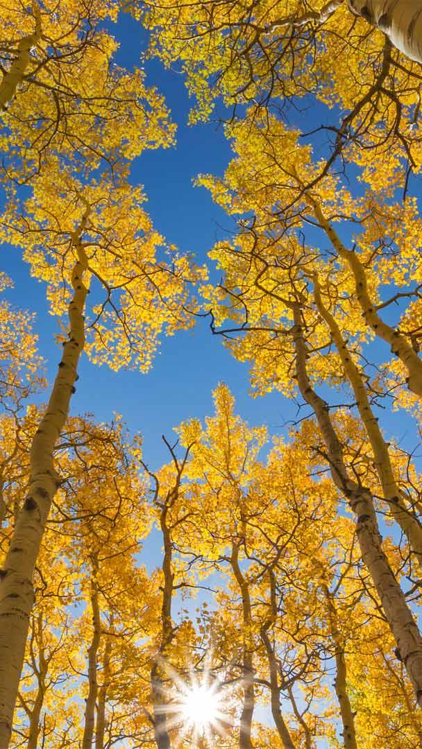 There"s a chance this dazzling, ground-up view of fall foliage is not where you think it is. While New England garners most of the leaf-peeping attention in the US this time of year, the high country of Colorado puts on a spectacular show out West. The aspens of the Centennial State turn shades of gold and orange in autumn, which officially starts today. Fall typically marks the end of vacations, the beginning of school, the arrival of chilly nights, and, if you"re lucky, a display of leaves turned brilliant shades of gold and red.