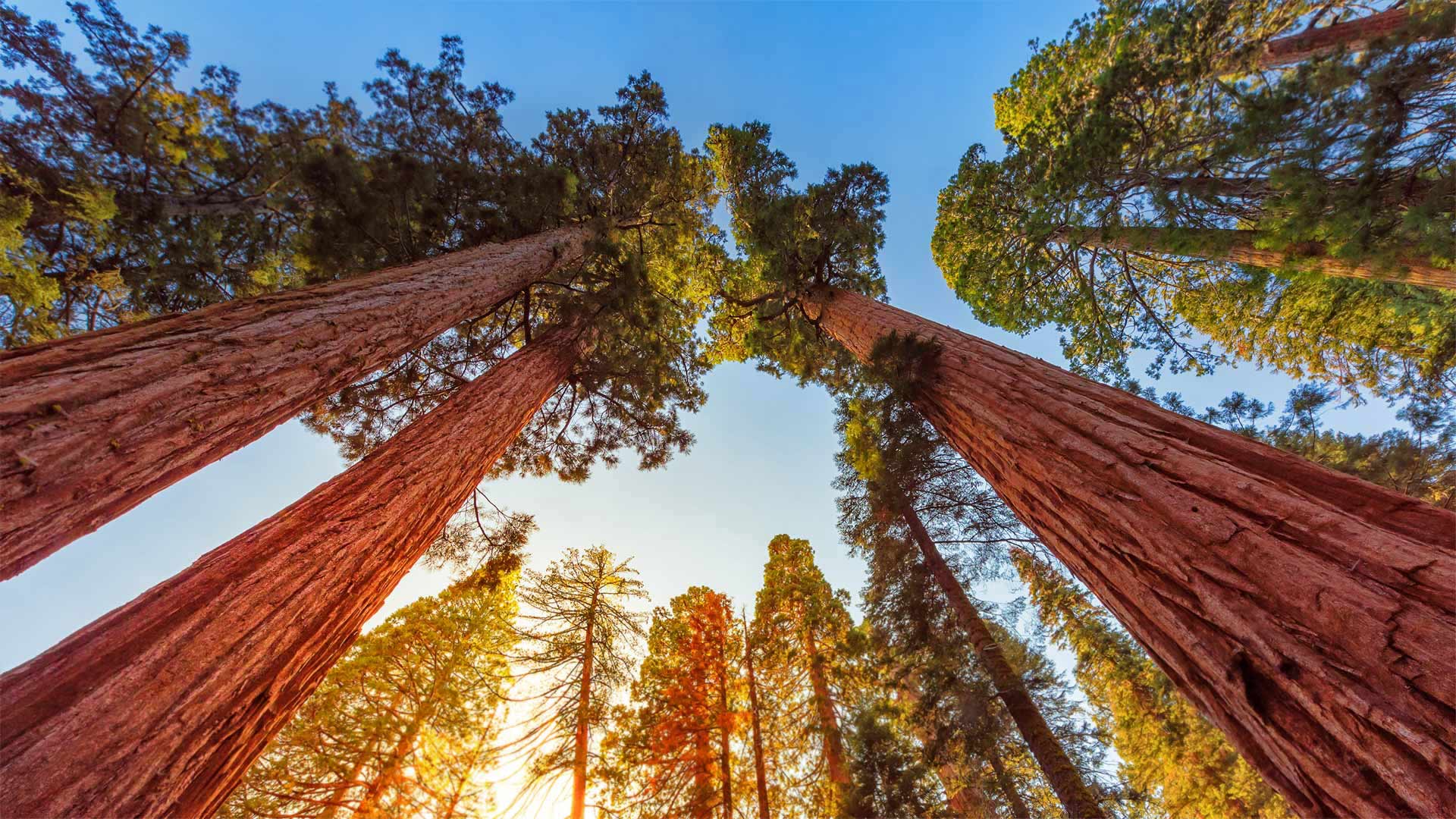 We"re looking at sequoia trees in Sequoia and Kings Canyon National Parks, California—the two parks border each other in the Sierra Nevada range in Central California. These giant sequoias can grow nearly 300 feet tall and some specimens have lived more than 3,000 years. Their longevity—even in areas prone to wildfires—is helped by thick bark that"s full of fire-resistant tannins.