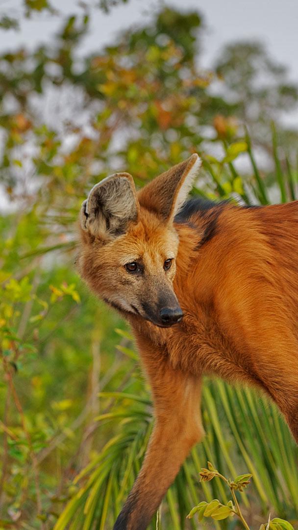 When people talk about the ‘dog days of summer,’ they’re referring to the sultry, hot days of the season that sometimes seem to stretch on forever–just like those long legs on the star of today’s homepage. This is a maned wolf, also known as a ‘fox on stilts,’ and it’s the largest species of canid in South America. As a canid, it belongs to the same family as the domestic dog, wolf, and coyote, and we think it makes a fun spokescritter for summer’s ‘dog days.’