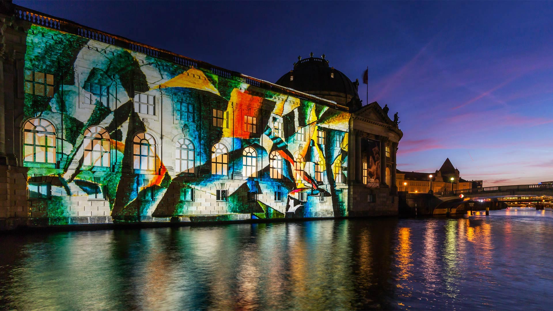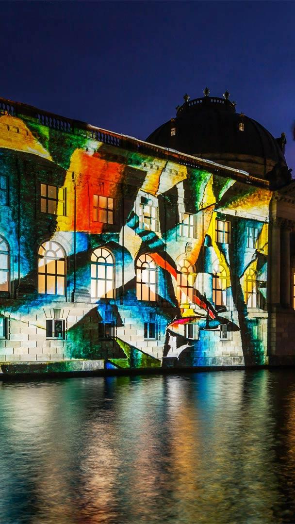 The city is the canvas tonight in Berlin, where the Festival of Lights is wrapping up its 10-day run in the German capital. The festival invites artists to illuminate landmarks throughout the city, like the Bode Museum, shown here overlooking the Spree River. The annual event is one of the most famous light festivals in the world, with more than 2 million visitors. Artists use light, projection, and video art to create their displays, and video artists compete in the World Championship for Projection Mapping, in which they project their works on national landmarks like the Berlin TV Tower and Berlin Cathedral.
