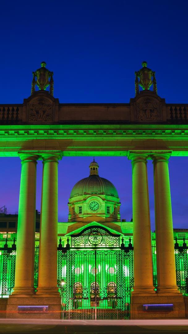 For centuries, St. Patrick’s Day in Ireland was not a loud, celebratory holiday, but more of a quiet observance of the feast day on March 17. It didn’t become an official public holiday in Ireland until 1903. Then in 1996, the capital city of Dublin started embracing the way St. Patrick’s Day is celebrated in the US and other places outside Ireland with large Irish populations: It began hosting a festival that’s become so popular, even government agencies housed in Dublin’s Government Buildings—seen in our photo today—get in on the fun by bathing their building’s façade in green light. A big parade and performances celebrating Irish culture are the order of the day here and at St. Patrick’s festivals throughout the country.